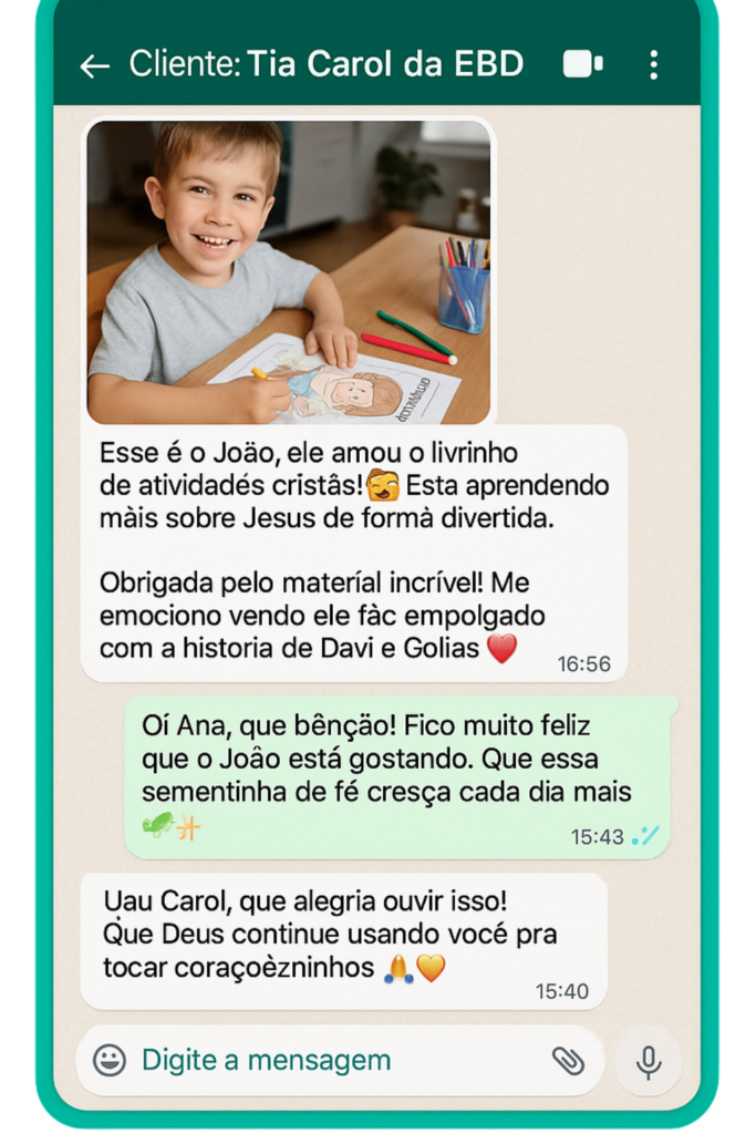 Prepare-se para embarcar com seu pequeno em uma jornada cheia de fé, diversão e descobertas! Este livro ilustrado foi criado especialmente para crianças de 3 a 7 anos, trazendo histórias bíblicas contadas com leveza, carinho e acompanhadas de atividades criativas que encantam e ensinam.